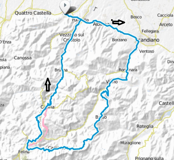 MONTECAVOLO-SCANDIANO-VEGGIA-CASTELLARANOROTEGLIA-BIV.LEVIZZANO(BIVIO CORTO)LEVIZZANO-VALESTRA-BAISO-VIANO-IANO-BORZANO-ALBINEA-MONTECAVOLO