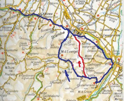 : MONTECAVOLO-SCANDIANO-VENTOSO-CASALG.ALTO-VEGGIA-CASTELLARANO-SAN VALENTINO ( BIVIO CORTO ) M. BABBIO-MONTE TRE CROCI-SCANDIANO-ALBINEA -MONTECAVOLO = Km.57PERCORSO CORTO