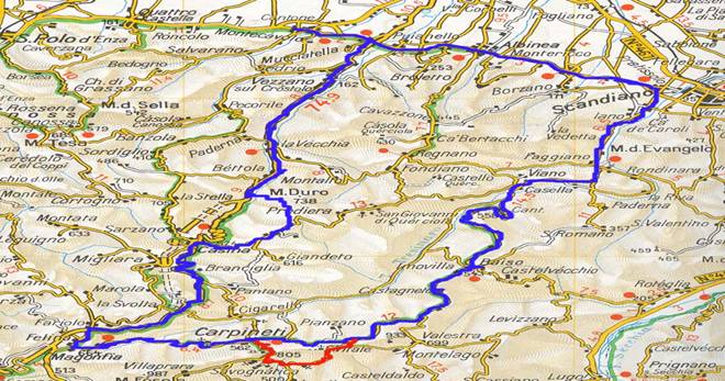 PERCORSO CORTO: CARPINETI - BAISO - VIANO - SCANDIANO - MONTECAVOLO = Km.82